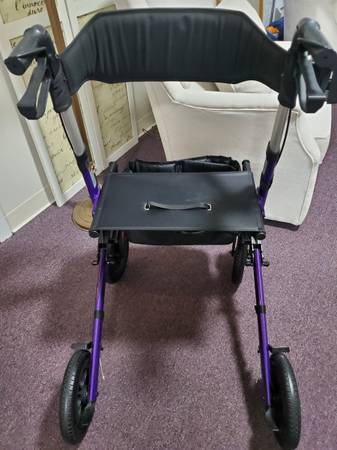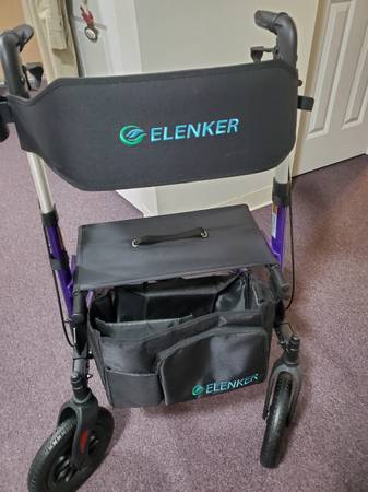 Elenker All Terrain Dual-Brake Rollator Walker 10" Wheels. Adjustable stand-up. Used for 2 months but found one that fits me better. Color Purple . Paid $149