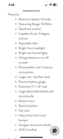 EWheels EW-M34 Electric scooter. Scooter works well and is easy to use. New battery installed last week. Light weight, easily comes apart and fits into any car. Comes with 3 keys. Ready for a new...