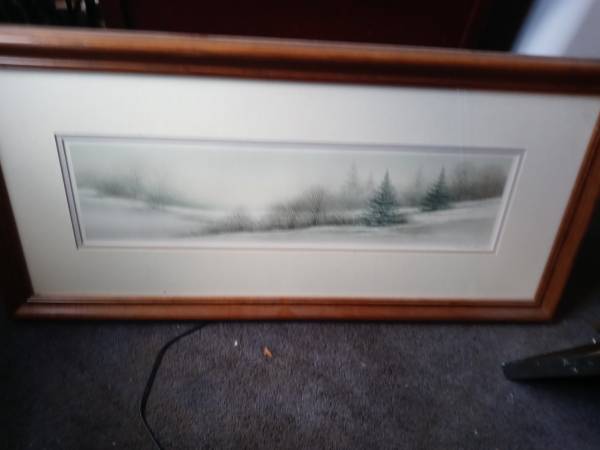 Beautiful winter scene picture. Approximately 12x22 inches. Cash only sold as is. 25.00 or b/o