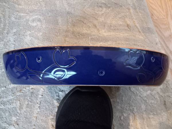 Pottery Platter Oval Bowl Made in Italy, Michelangelo brand, oven safe. Beautiful glazed blue in color. New Never Used. Great gift idea. Measures 13 inches long x 9 inches wide x 2 inches high....