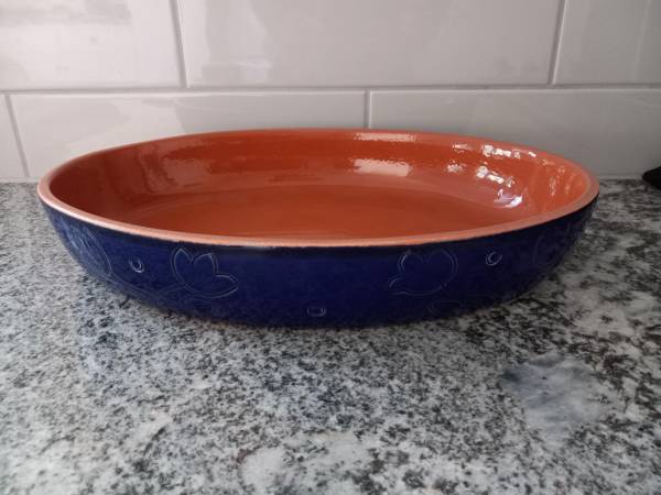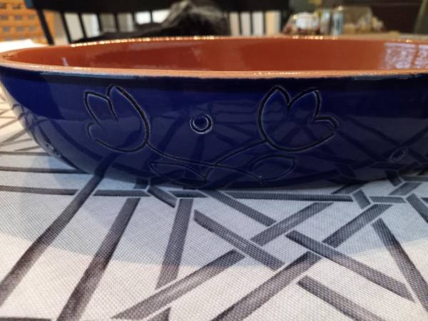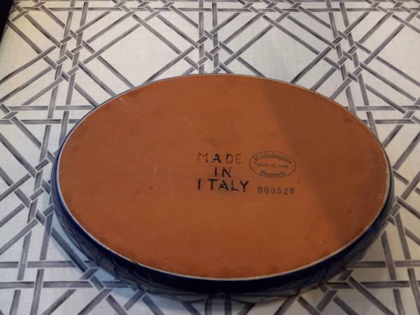Pottery Platter Oval Bowl Made in Italy, Michelangelo brand, oven safe. Beautiful glazed blue in color. New Never Used. Great gift idea. Measures 13 inches long x 9 inches wide x 2 inches high....