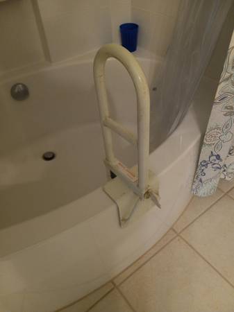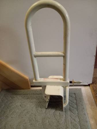 Rail Grab Bar / Bathtub Safety Bar, works well, easy install, 4-3/4" wide opening, 2-1/2" Closes, 20" tall X 8" wide. Pickup Granby, CT only. Cash only.