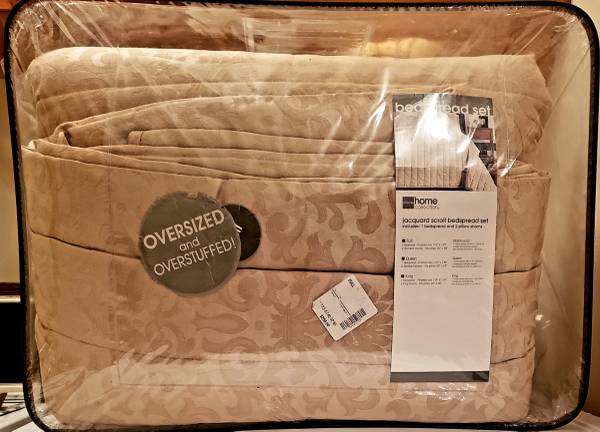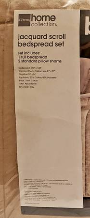 JC Penney Over Size Over Stuffed Full Size Bed Spread Set For Sale , Bed Spread and 2 Shams , Like New , unused , paid $200.00 , I'm Only Asking $60.00 for the set and believe this is a fair and reasonable less than half price.....