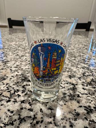 1.5 oz Shot Glasses Set of 3 (Sold Only as a Set): - Las Vegas - Walt Disney World - Grumpy (Etched) - Simba "Just Can't Wait For This Fling" In Excellent Condition Approx. 3.5" Tall In Person, Cash...