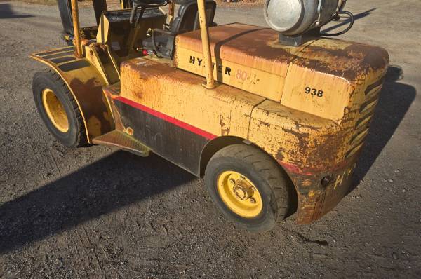 Hyster H80C Forklift, side shift, about 5ft forks, propane powered, 3 speed with shuttle shift, lifts 12ft tall, runs excellent, parking brake works, brakes work, all hydraulics work, will need new battery, propane tank does not go with machine, can be used to test drive and load on trailer, call eight six zero three67 23seven2 with any questions, great simple mechanical forklift, see pictures