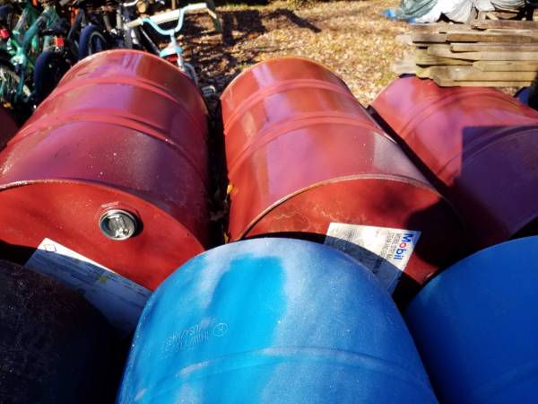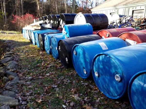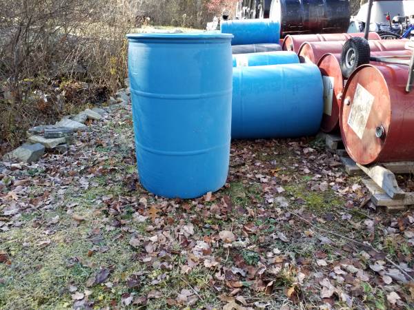 55- Gallon steel and plastic barrels. The barrels are in excellent condition and have either fixed or removable lids. Heavy gauge long lasting. Great for : burn barrels, smokers, barbecues, grain and liquid storage, maple syrup heaters, barrel wood stoves, planters, (lumber available for planters) charcoal makers, rain barrels and dry wells. Only $25.00 show contact info