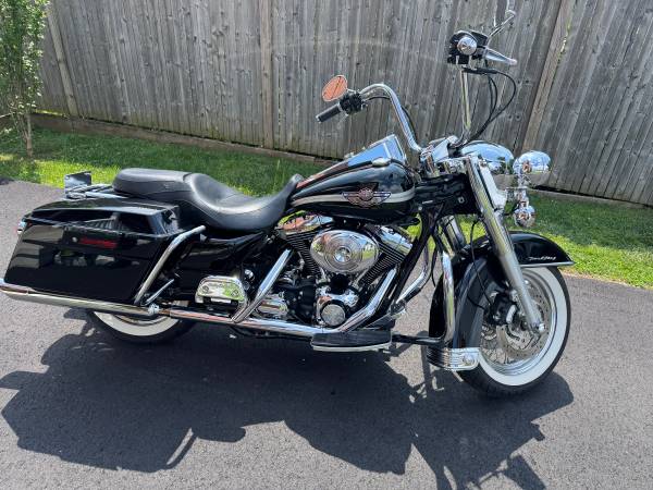 2003 HarleyDavidson Roadking Classic 2nd owner bought it with 7500 miles on it 9years ago now has 11,000 on it definitely don’t ride it much. Absolutely gorgeous machine, tasteful upgrades adult owned lots of extra parts too windshield, backrest, original saddlebags in leather, new battery new tires, original handlebars, Serious Inquiries only….. No scammers $9,500 OBO