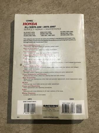 Clymer Honda XL/XR75-100 1975-1997 Service Repair Manual Good Condition