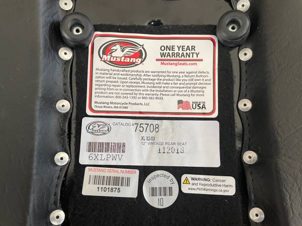 Mustang HD 82-03 Sportster XL Black 12" Wide Smooth Rear Pillion Seat P/N 75708