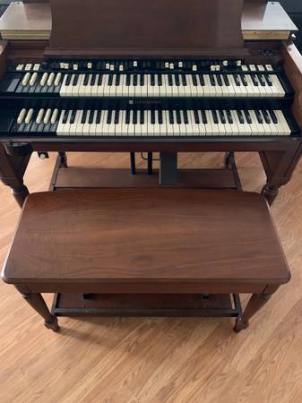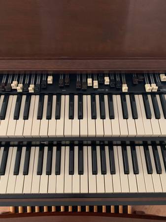 Selling a 1973 Hammond B3 Organ with 1974 Leslie 147 Leslie speaker. Also included is the Hammond bench and Bass pedals. It was bought new from the Hammond store in 1974. We are the original owners. The organ has been home kept since new and has never travelled or been used outside of the home. It is all original and has never had anything done to it since it was new. It is the same as it was when it was bought new. The organ, Seat, pedals and Leslie almost look like they are new, the finish is in all original and excellent shape on all of them. It also is probably one of the newest condition Hammonds out there and has very low hours of being played. It has not been played for over 30 years and has been sitting with its cover on. Every six months it is turned on and played for a few minutes and then oiled as to the Owners manual. Everything works just as it did new. It also has the original stickers on the black keys it came with from the Hammond dealer. It also has the reverb for the Leslie. Humbly say this is probably one of the nicest, all original and very low usage vintage Hammond organs on the market.
