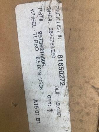 Used 8.5 x 19 Porsche wheel part# 99736215605 small scratches see pics $200.00 203 five two five 947 five