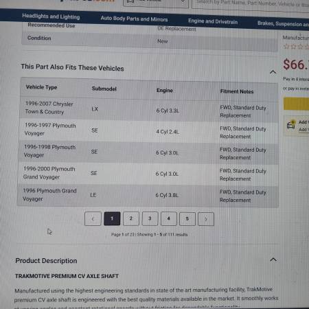 Bought all brand new for a 01 dodge caravan 3.8l will fit many other years look up the specs from part numbers. Asking $100 for all make me a offer NEED GONE ASAP TEXT ME! Both front axle shafts, front brake rotors, front brake pads, full head gasket kit, and head bolts.