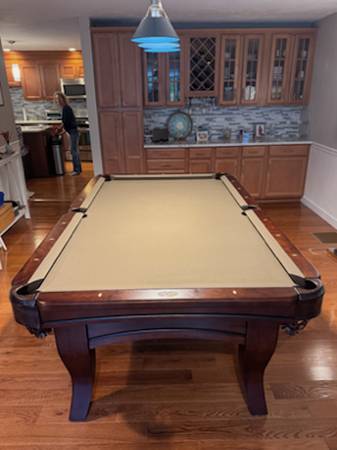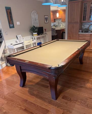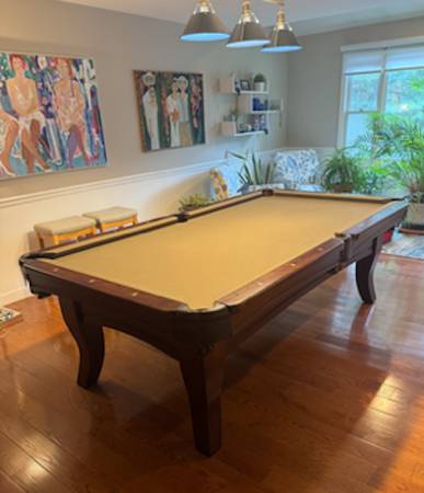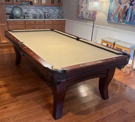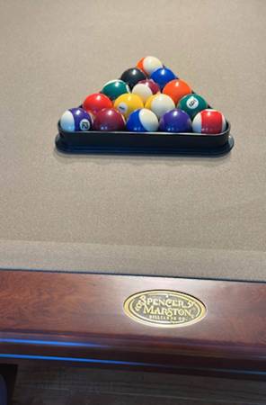 Elevate your game room with this stunning 8ft Spencer Marston pool table, one of the most premium names in the billiards world. This gently used table is in excellent condition, featuring a 3-piece slate playing surface for true, consistent roll and tournament-quality play. Perfect for home entertainment, family fun, or serious billiards enthusiasts in the Hartford, CT area. Enjoy a luxury table for years to come!