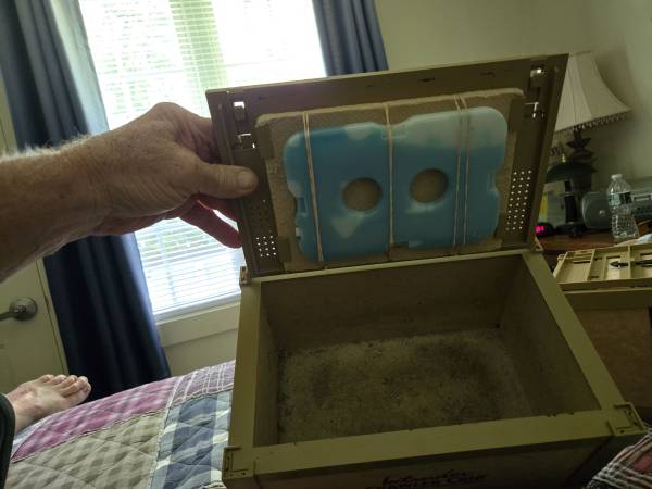 Worm bait box keeps bait fresh. Packed with goal N' lively Worm bedding sm med large. Door ventilation &ice pack to keep them cool. Great professional bait for worms ect nice to have to sell...