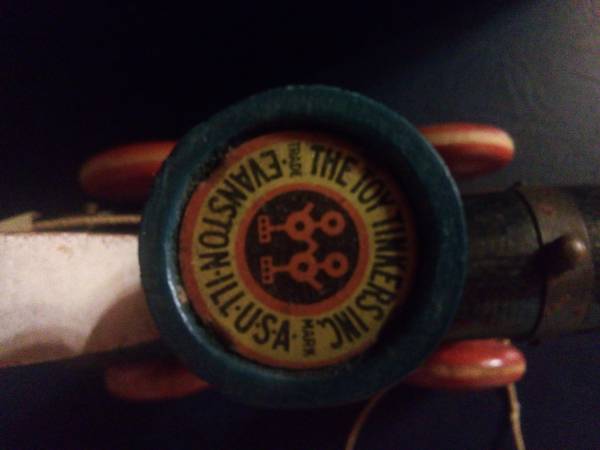 It's very old and has some wear but looks great. Very rare. Made by The Toy Tinkers Inc. Evanston ILL U. S. A.
