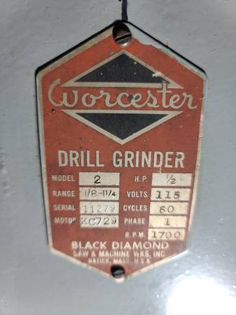 Worcester drill grinder made by Black Diamond Machine Works model 2, 1/2hp, 1/8" to 1¹/⁴" capacity single phase good condition $550 obo cash only, call or text 860-328-five1five8