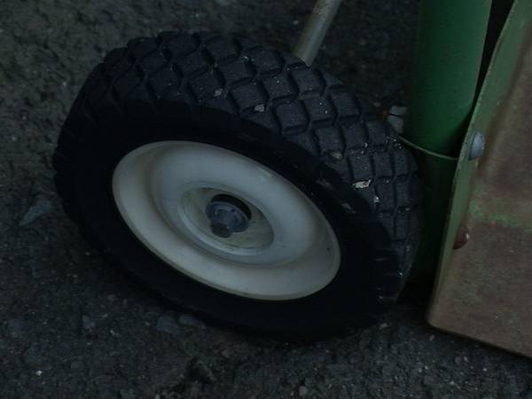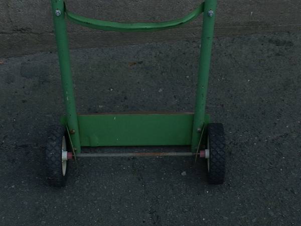 Bottom plate measures 15" wide by 5" . 42" high. The flat free tires measure 6" x 1.5" wide. Great shape.