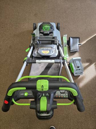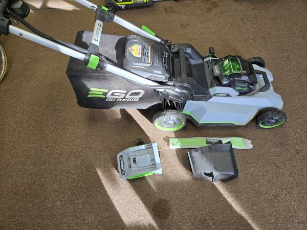 EGO Power+ 21" 56V Self Propelled Lawn Mower Kit, with Battery, Charger, Chute, Bag, and Extra Blade. Excellent condition! Works great! Any questions? Feel free to call/email/chat.