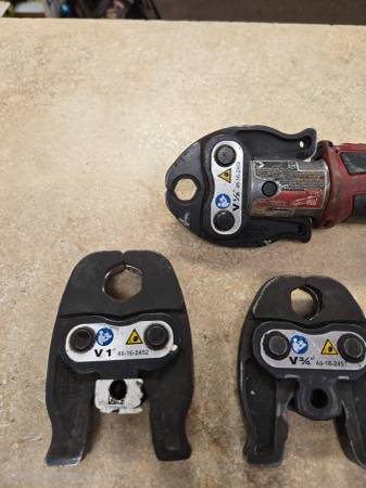 Milwaukee M12 Force Logic Pressing Tool Kit 2473-20 Good condition! Includes 3 Jaws, Battery, and Charger. Any questions? Feel free to call/email/chat.