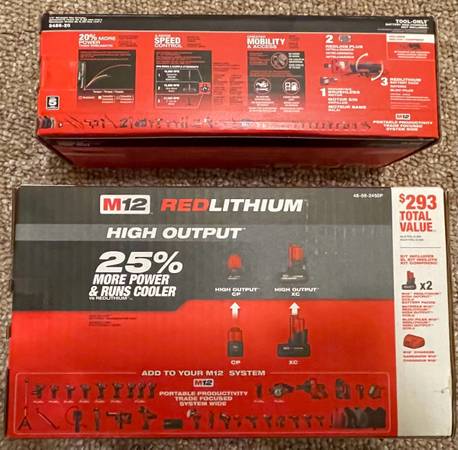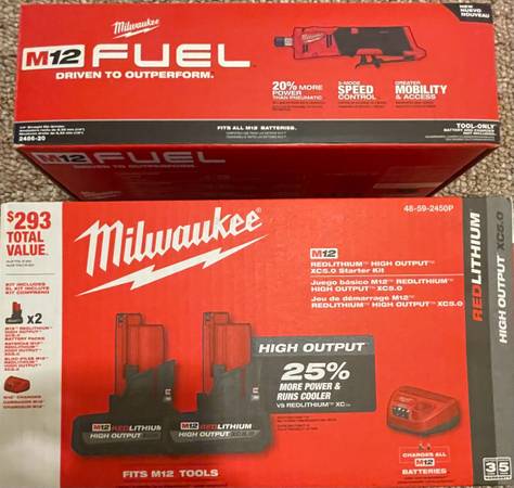 Brand New in Box Sealed Milwaukee Cordless M12 - (2486-20) Straight Die Grinder (1/4” Collet) with (2) M12 5ah High Output Batteries and Charger Kit - (58-59-59450P)