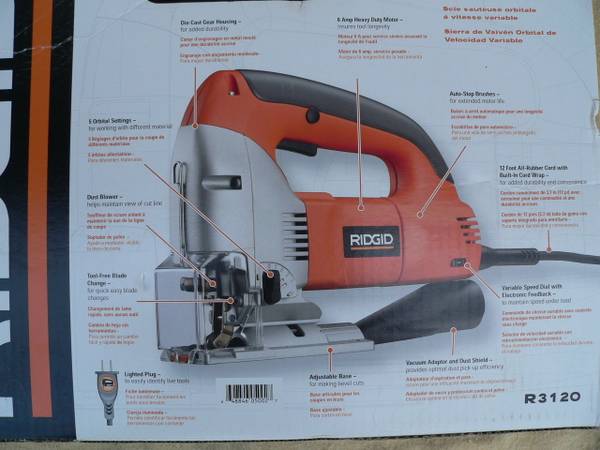 NEW RIDGID ELECTRIC VARIABLE SPEED ORBITAL JIGSAW + New in the box with carry case. Loaded with features, Big 6 amp, 5 settings, lighted plug and much more. See last picture to see all features. A great deal at only $72. Compare up to $100 +