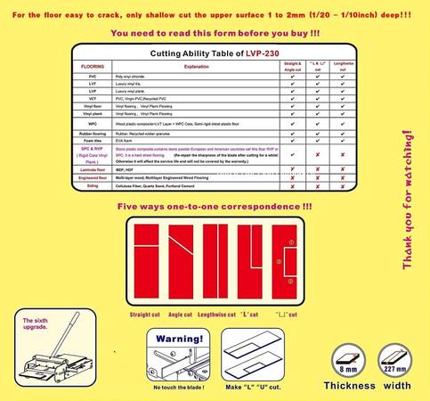 8.9" cutting width and 5/16"(8mm) cutting thickness; Translational cutting,the deep of the throat is 115mm/4.5inch.