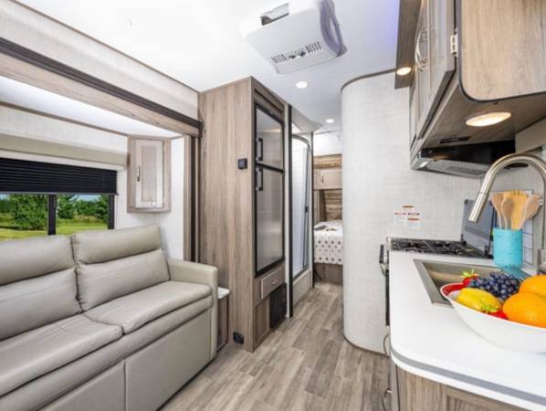 Demo with full manufacturer warranty. Coach Length 23’1”. Includes electric awning, Bluetooth stereo with speakers inside and out, Upgraded A/C, Power tongue jack, 3 burner range with oven and glass top, upgraded water heater, premium foam mattress and a spare tire. ALL RV always includes: Freight from factory to our dealership. Dealer prep and system check. Introduction and tutorial with a personalized hands on class to familiarize you with your new camper. Trade value inspection. Test pull acclimating you to towing your new camper. Stock number N7055013. Retail Price $42,279 Clearance Price $24,995. Call ALL RV George 860-250-9700