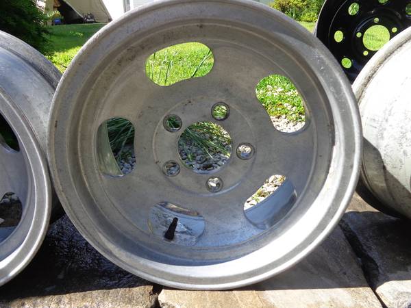 4 vintage fenton gyro racing aluminum slot rims (2) 14 x 6 and (2) 14 x 7 unlug 4.5 to 4.75 on 5