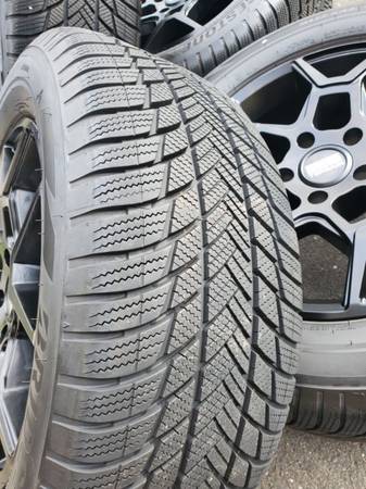 Set of 4 Wheels and tires are off of a 2012 BMW X5 but purchased new in 2022. Used for one winter approximately 3,000 miles. Wheels have universal TPMS sensors installed.