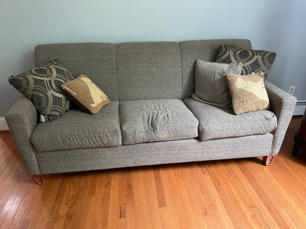 Lovely living room combination needs a new home. 4 pieces: Sofa, Loveseat, sitting chair, and ottoman. Given as a set only. Removal and pickup available as of Sept. 20, 2025. Sorry, you'll have to...